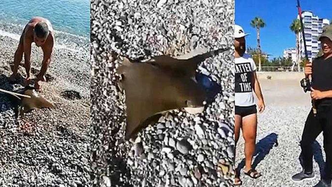 Konyaaltı sahili kıyısında olta ile balık tutan bir kişinin oltasına takılan vatoz cinsi balık, balıkçılar tarafından üzerindeki olta iğnesi çıkartıldıktan sonra tekrar denize bırakıldı. Balıkçıların “dur yavrum dur bırakacağım” diyerek iğneyi çıkarmasıyla birlikte özgürlüğüne kavuşturulan vatozun yaklaşık 6 kilo olduğu tahmin edilirken, türünün zehirli olup olmadığı ise bilinmiyor.