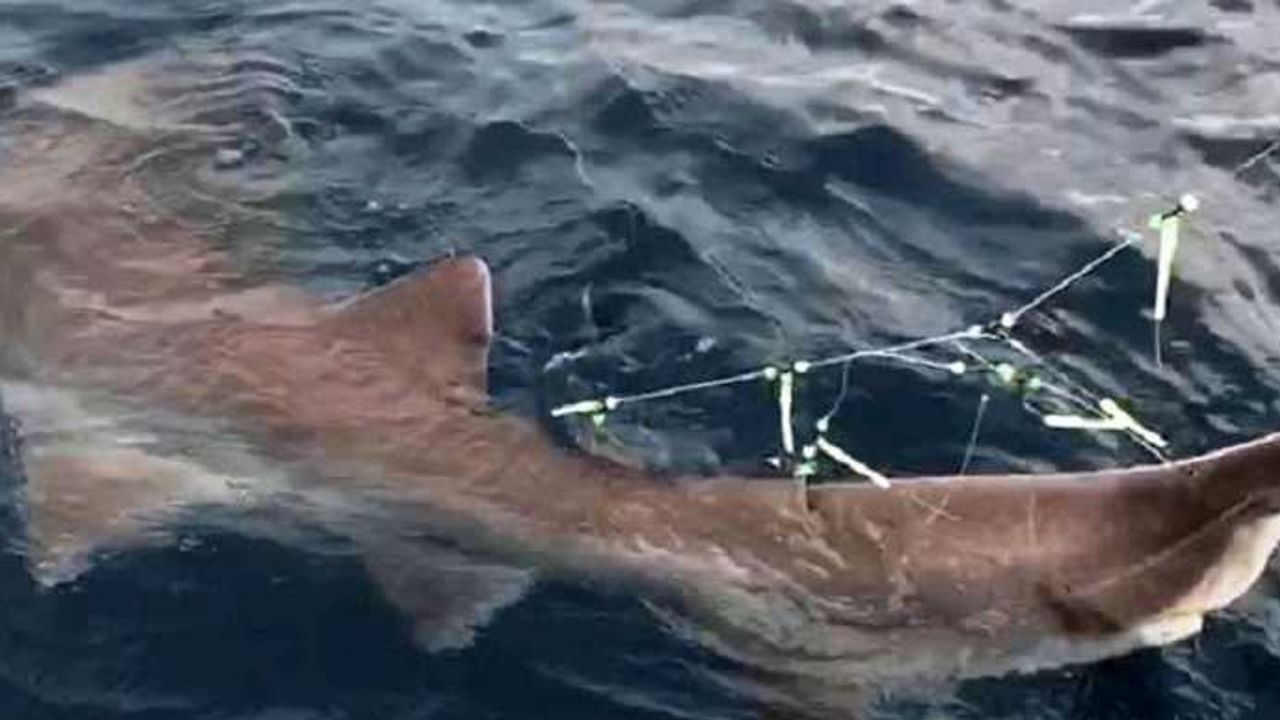 Yaklaşık 6 metre uzunluğunda ve oltadaki özel aletle 326 kilogram ağırlında olduğu belirlenen camgöz cinsi köpekbalığını tekneye çekmeye karar veren amatör balıkçılar, bunun için yaklaşık 3 saat uğraş verdi. Çok yorulan Tanju Sülün ve arkadaşı, tekneye almaları halinde kendilerine zarar vereceği endişesiyle köpekbalığını suya bıraktı.