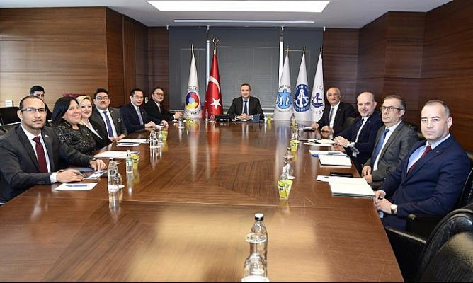 Merkez binasında gerçekleşen ziyarette konukları İMEAK Deniz Ticaret Odası Yönetim Kurulu Başkanı Tamer Kıran ağırladı.