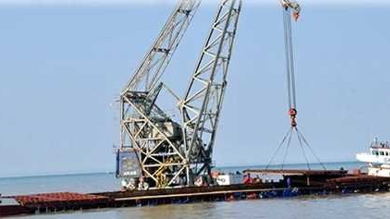 Samsun Met Irmağı girişinde 4 aydır kurtarılmayı bekleyen soya yüklü Gulf Rio adlı 90 metre uzunluğundaki geminin yükü, özel olarak getirilen Herkül adlı yüzer vincin yardımı ile boşaltılmaya başlandı.