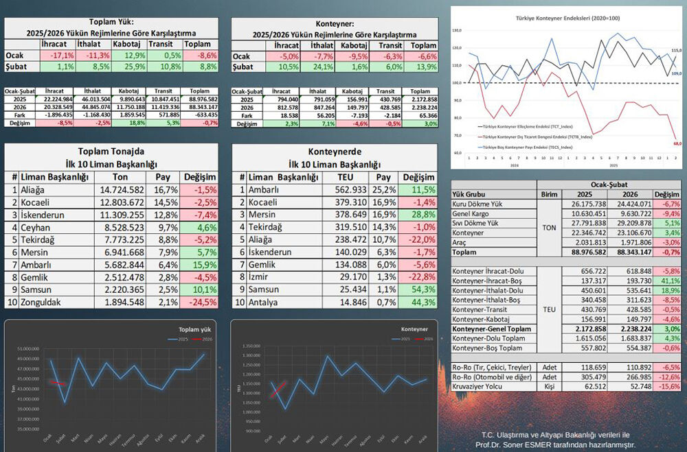 Piri Reis Üniversitesi Öğretim Üyesi Prof. Dr. Soner Esmer, 2026 yılının ilk iki ayına dair liman istatistiklerini değerlendirdi.