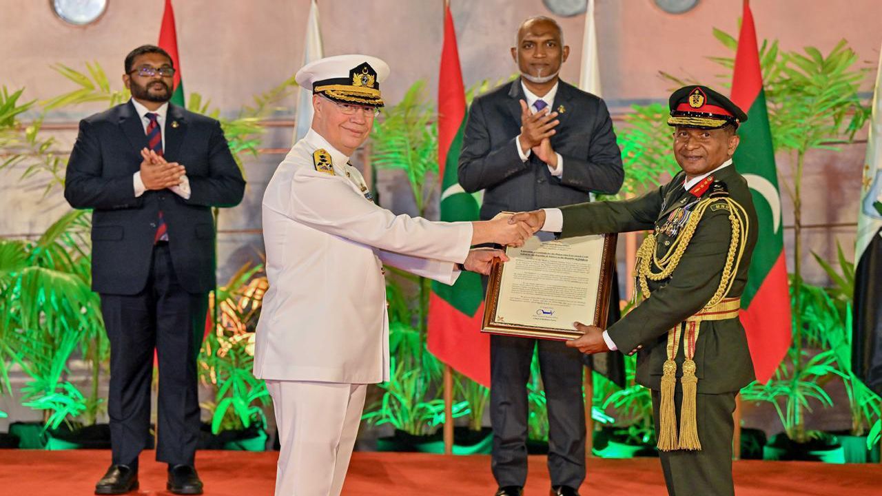 Açıklamanın devamında şu ifadelere yer verildi: "10 Ağustos 2025 tarihinde Male Limanı'na aborda olan TCG Volkan'da Türk bayrağı indirme töreni düzenlendi. Törende Maldivler'e akredite yeni Delhi Askeri Ataşemiz ile Maldivler Savunma Bakanlığı Uluslararası Savunma İş Birliği ve Tedarik Genel Müdürü yer aldı. TCG Volkan'ın Maldivler Milli Savunma Kuvvetleri (MNDF) envanterine resmi olarak dâhil olduğu hizmete giriş töreni, 15 Ağustos 2025 tarihinde Maldivler Cumhurbaşkanı, üst düzey devlet yetkilileri ile Kolombo Büyükelçimiz Semih Lütfü Turgut ve Donanma Komutanımız Oramiral Kadir Yıldız'ın katılımıyla gerçekleştirildi."