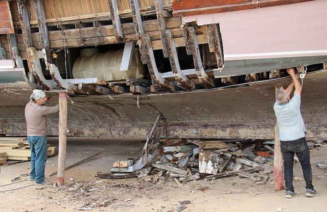 Teknelerin bakımlarını yapan Tekne Ustası Ahmet Yıldırım, "Teknemizin bazı yerlerinde çürükler vardı, mutfak bölümünde genellikle, sudan dolayı oluşuyor. Onların tamiratını yapmaya geldik. Postasıydı, eğrisiydi, tahtalarıydı, bağlarıydı onları yenileyeceğiz. 3 aylık bir işimiz var" diye konuştu.