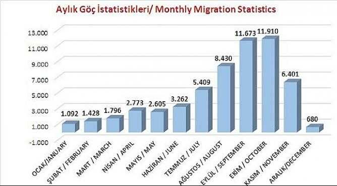 2018 yılında 638 olan düzensiz göç olay sayısı, 2019 yılında bin 674'ye yükseldi. 2018’de ölüme yolculukta yakalanan düzensiz göçmen sayısı 24 bin 692 olarak kayıtlara geçerken, 2019 yılında bu sayı büyük bir artış göstererek 57 bin 458'e ulaştı.