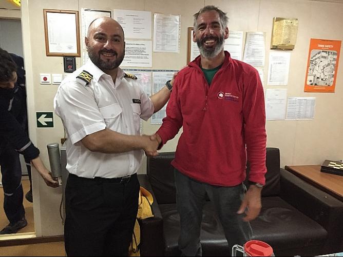 Gemiye alınan kazazede, 1 Temmuz'da Martinique Adası’ndan, Azor Adaları’na doğru teknesiyle yola çıktığını ve seyri sırasında birşeye çarptığını ve teknesinin su almaya başladığını ifade etti. Çarpmanın ardından suyu tahliye etmeye çalışan kazazede, başarılı olamayınca acil yardım çağrısında bulunur. Kazazede teknesinde bulunan bir şişme bota binerek teknesinden ayrılmıştır.
