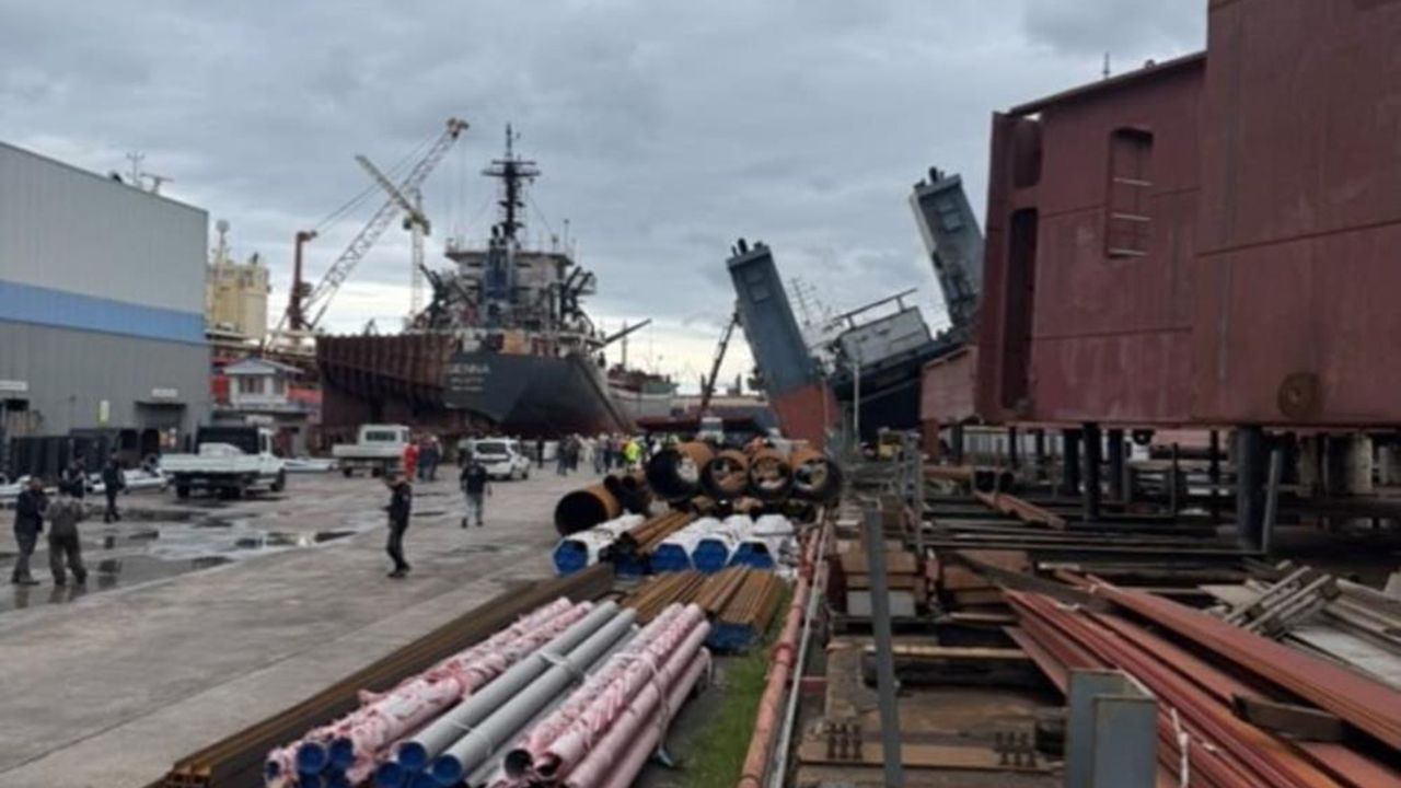 Tuzla Tersaneler Bölgesi'nde öğlen saatlerinde bakım ve onarım çalışmaları süren bir gemi, henüz belirlenemeyen bir nedenle yan yattı.