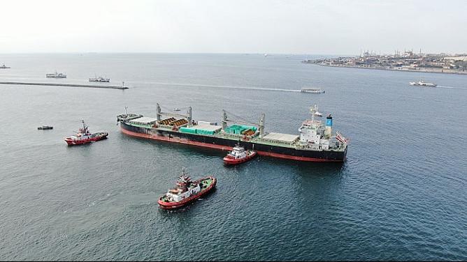 Öte yandan Haydarpaşa Limanı açıklarında karaya oturan 197 metre boyundaki gemi dron ile görüntülendi.