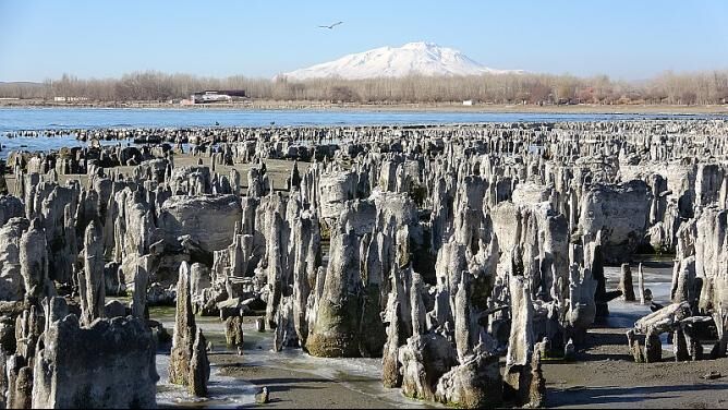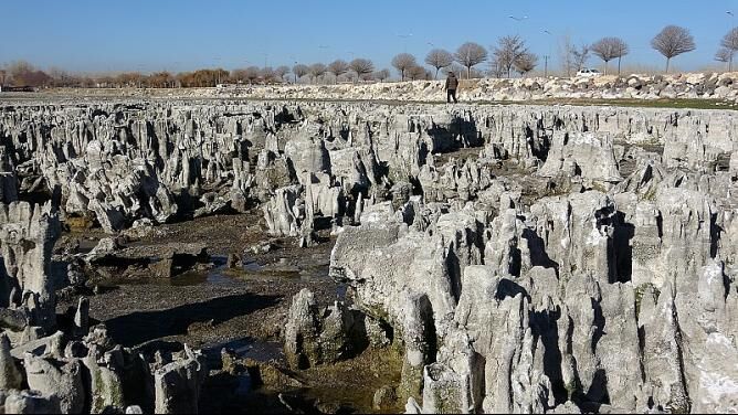Dünyanın en büyük sodalı gölü olan Van Gölü, küresel iklim değişikliğinin etkisiyle alan kaybederken, kıyı şeridinde şu ana kadar karaya çıkmış en büyük mikrobiyalit oluşumlarından birine rastlandı.
