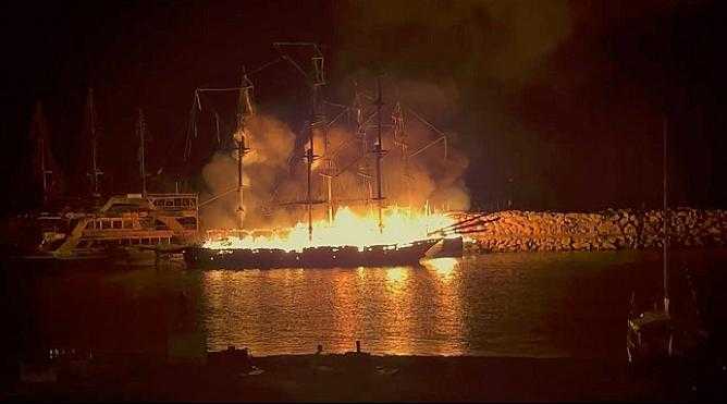 Turizm merkezi Alanya Türkler Mahallesi'ndeki limanda bir gezi teknesinde dün gece başlayan yangın, kısa sürede yan tarafındaki 3 tekneye de sıçradı. 4 teknenin alev aldığı yangına, çok sayıda itfaiye ekibi ve Alanya Sahil Güvenlik Bot Komutanlığı ekipleri denizden müdahale etti. Yangında 2 ahşap tekne küle dönerken, sac kaplama iki teknede ise söndürüldü. Alanya Belediye Başkanı Adem Murat Yücel’de bölgede incelemelerde bulundu. Alanya Belediyesi deniz temizlik ekipleri, suya karışan kül ve molozları temizledi. Yangından az etkilenen iki tekne ise limanın farklı bölgesine çekilerek, hasar tespiti yapıldı. Yangınlarla ilgili Alanya Cumhuriyet Başsavcılığı öncülüğünde, Alanya Sahil Güvenlik Bot Komutanlığı ile İlçe Jandarma Komutanlığı ekiplerinin incelemeleri sürüyor. Alanyaspor Kulübü Başkanı Hasan Çavuşoğlu'da olay yerine gelerek tekne sahipleri ile görüştü. Yangının çıkış nedeni ile ilgili soruşturma başlatılırken, tekne sahipleri 7 dakika gibi kısa bir sürede 4 teknenin tamamen alevlerin içinde kaldığına dikkat çekti.