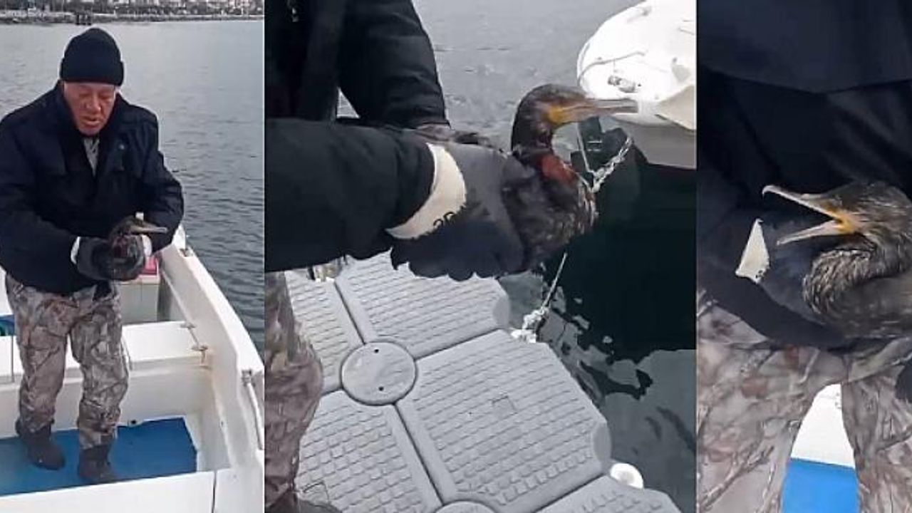Gemlikli balıkçı Adnan Ballı ve Serdar Döner tarafından denizde yaralı olarak bulunan karabatak Gemlik Belediyesi veterinerlerine teslim edildi.