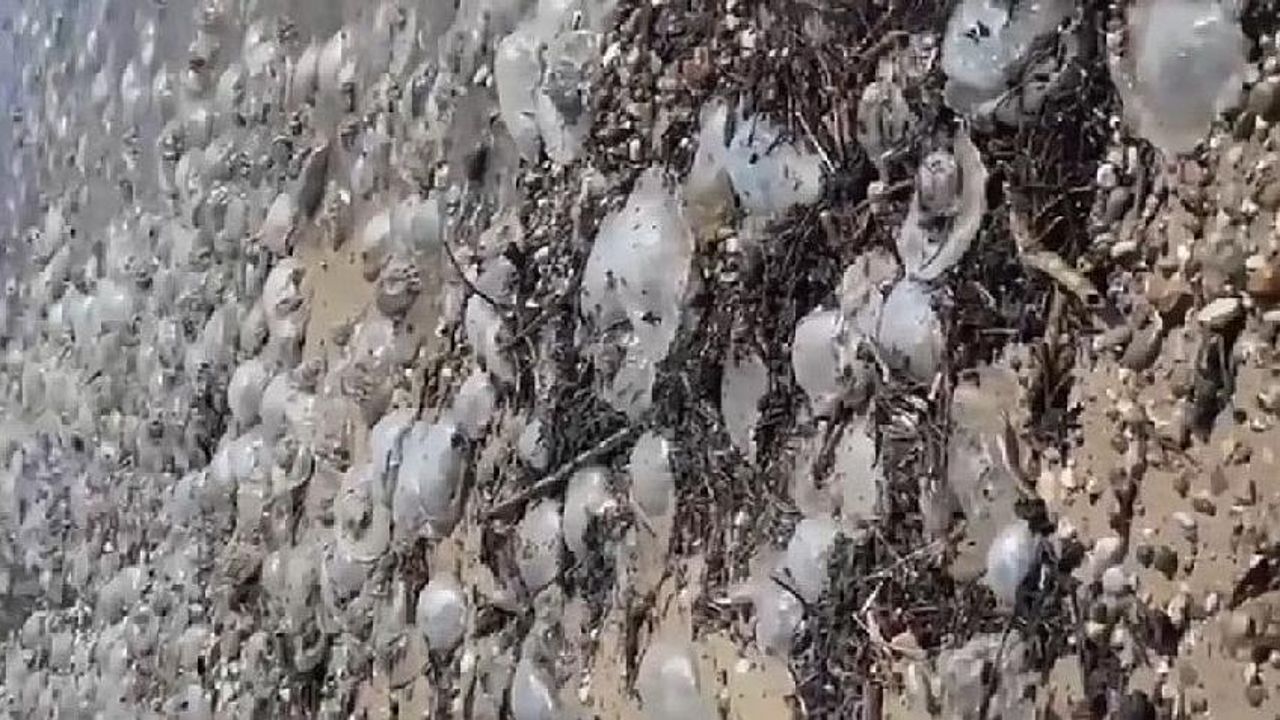 Antalya Körfezi’nden geçiş yapan yüzlerce denizanası, şiddetli poyrazın oluşturduğu akıntıyla yörüngelerinden çıkarak kıyıya vurdu. Telef olan yüzlerce dev denizanasının Akdeniz’deki en büyük tür olduğunu kaydeden Akdeniz Üniversitesi Su Ürünleri Fakültesi Öğretim Üyesi Prof. Dr. Gökoğlu, vatandaşlara dokunmamaları konusunda da uyarılarda bulundu. Gökoğlu, “Yakınına yaklaşmamaları ve dokunmamaları lazım. Yakıcı hücreleri var. Hassas bölgelere sürülürse yanma yaşanabilir. Vatandaşlarımızın, balıkçılarımızın ve özellikle çocuklarımızın dikkat etmesi gerekiyor” dedi.